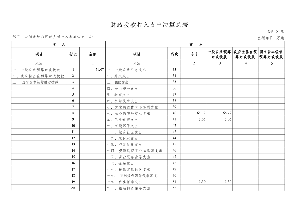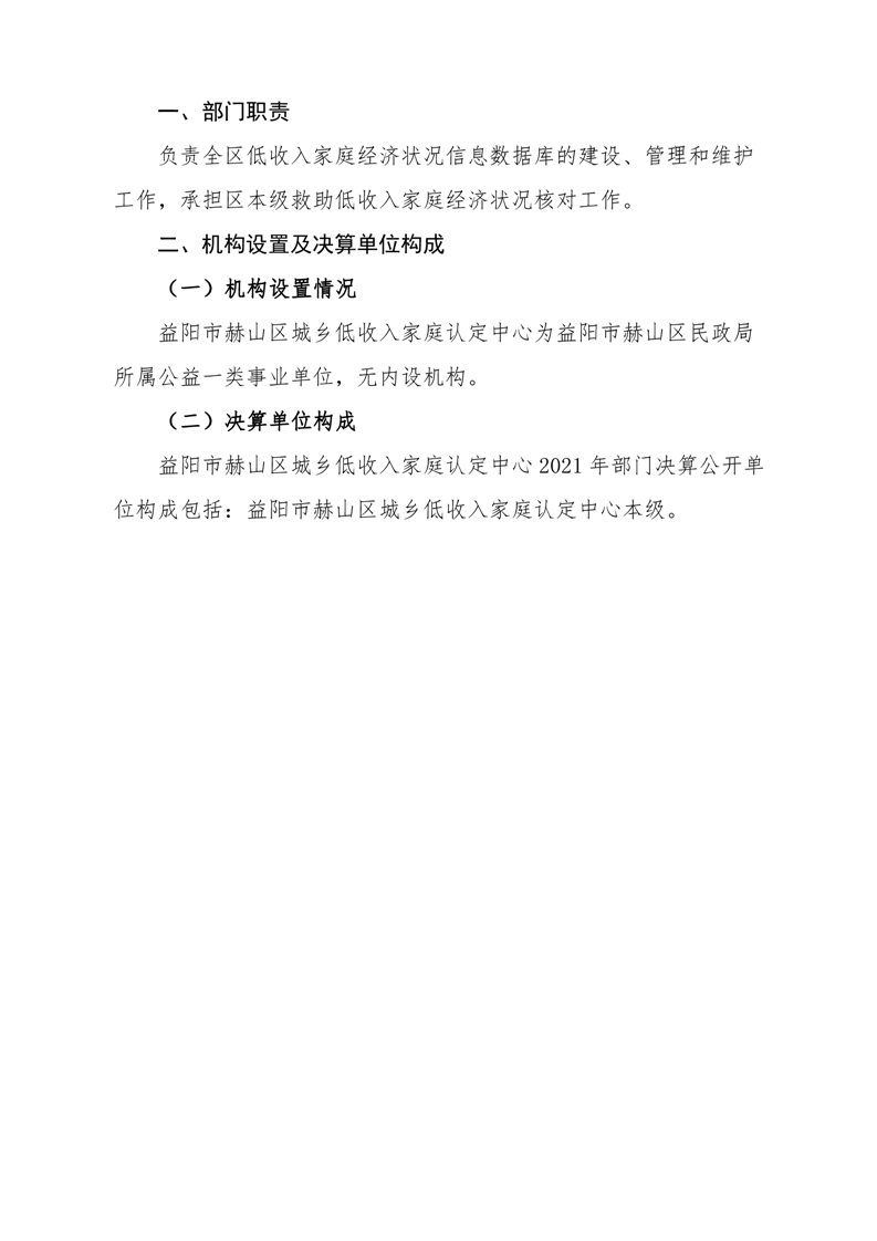 益阳市赫山区城乡低收入家庭认定中心2021年度部门决算公开