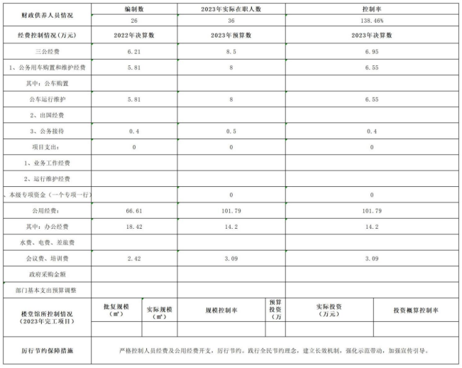 三公经费控制: 2023年三公经费6.95万元,其中公务用车运行维护费6.55万元,国内公务接待费0.4万元;我单位把推进厉行节约、反对浪费工作的制度化、规范化、程序化,确保“三公”经费各项要求落到实处。严格按照财务制度的规定,每一笔业务支出严格按照财务审批程序执行财务报销制度。