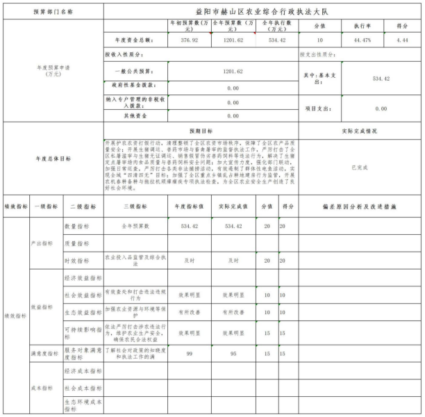 益阳市赫山区农业综合行政执法大队2023年度部门整体支出绩效评价报告