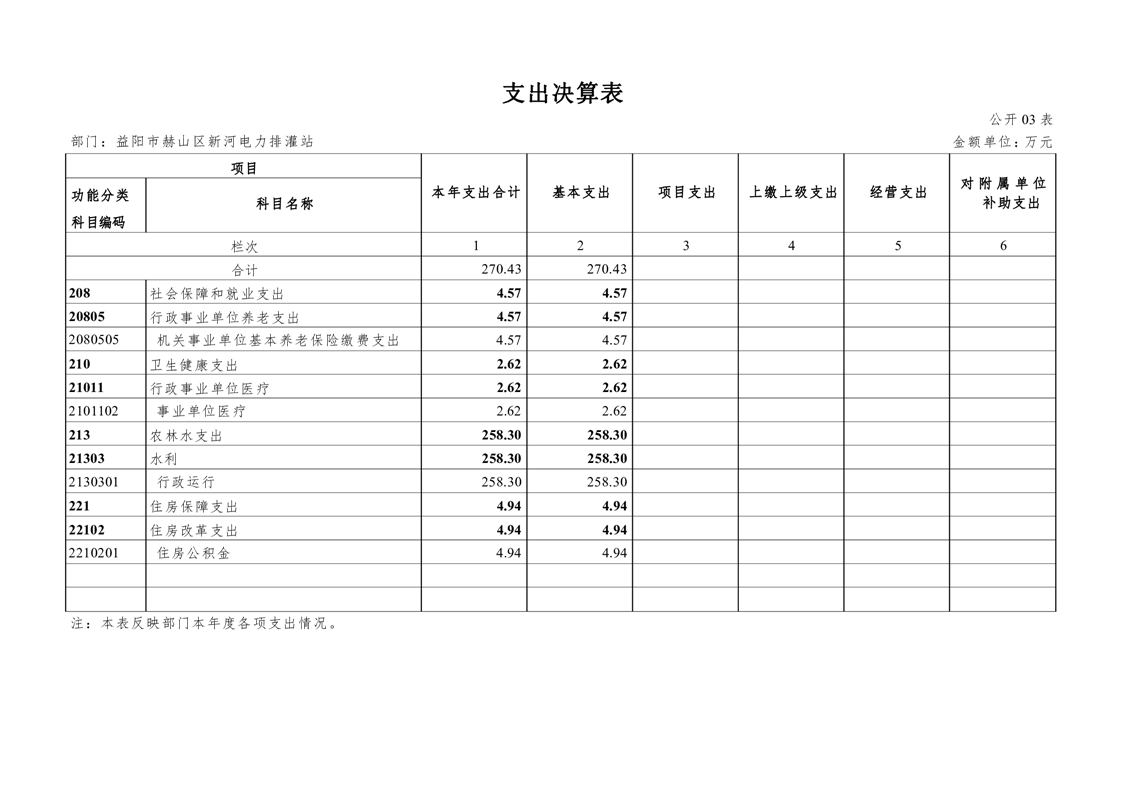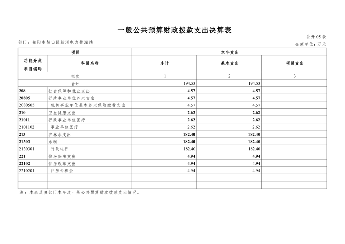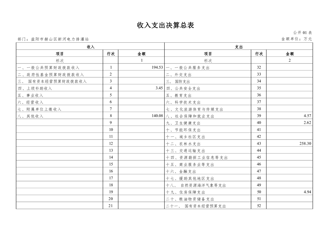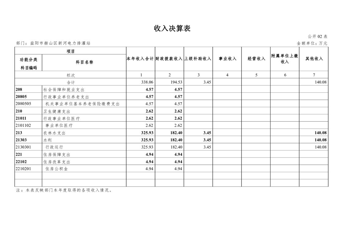 2021年度益阳市赫山区新河电力排灌站部门决算
