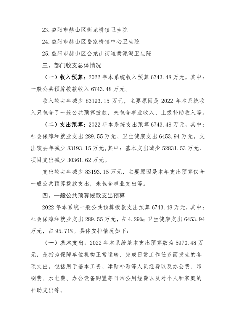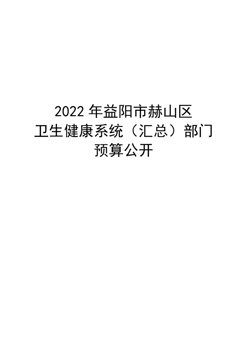 2022 年益阳市赫山区 卫生健康系统(汇总)部门 预算公开