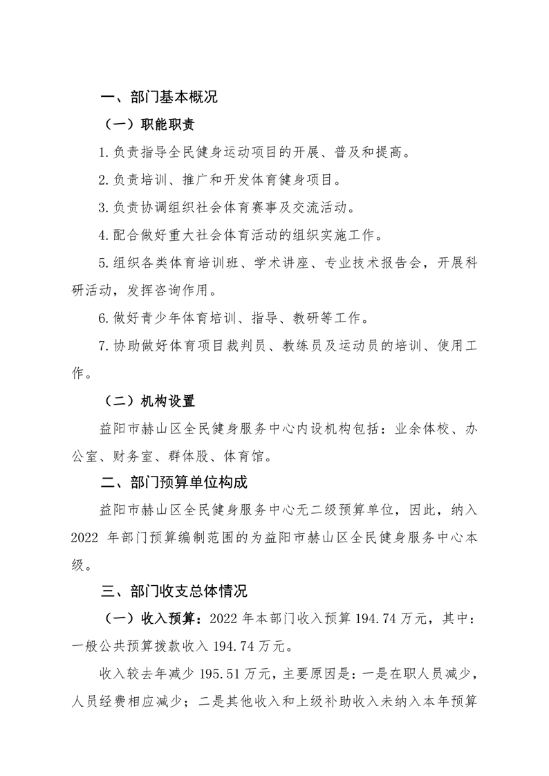 益阳市赫山区全民健身服务中心2022年部门预算公开