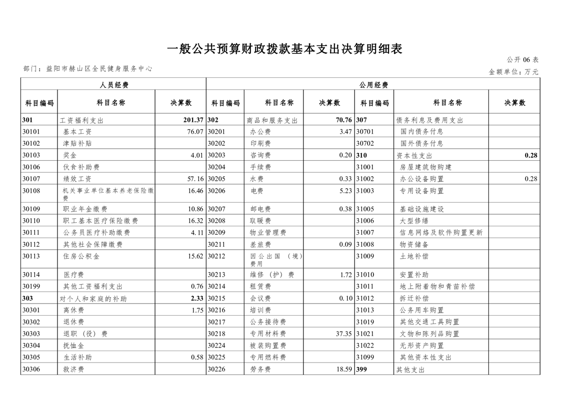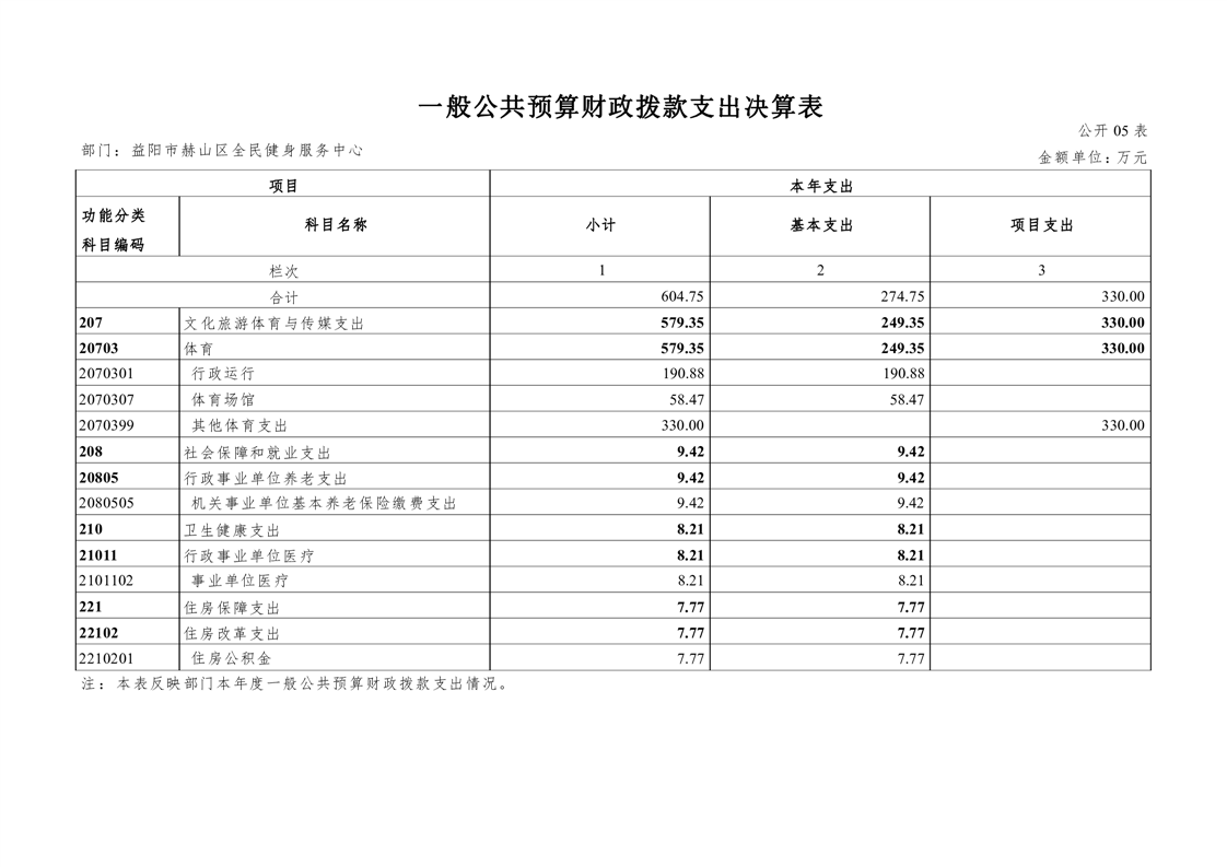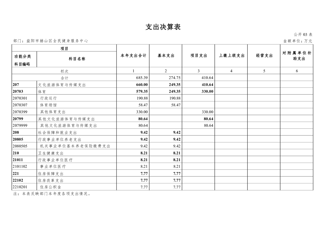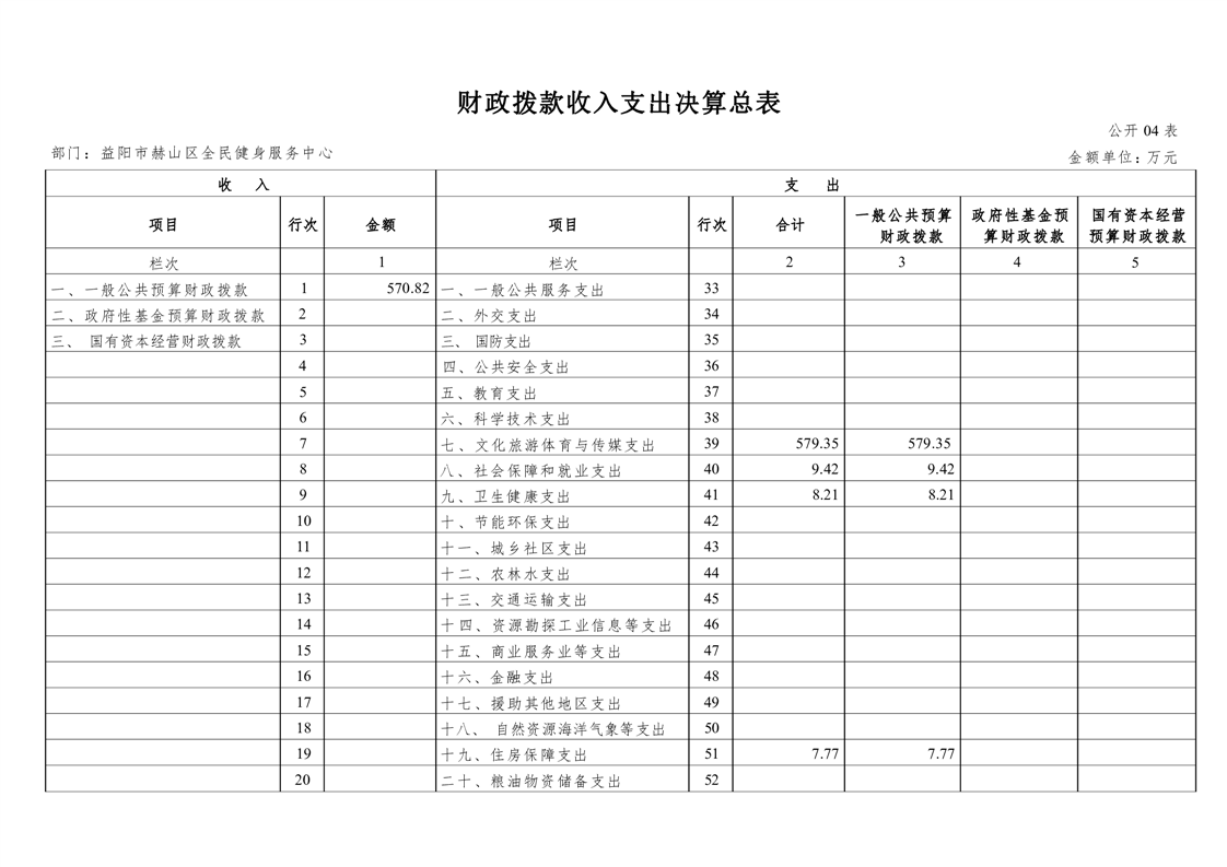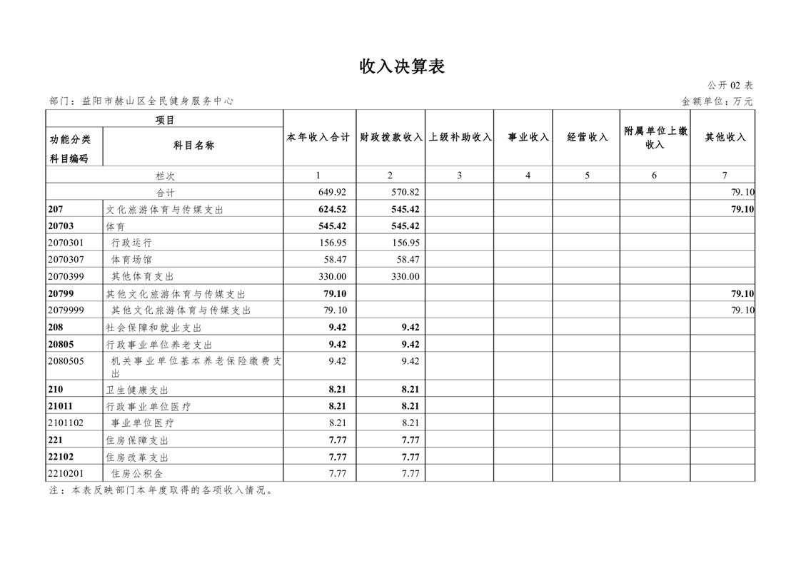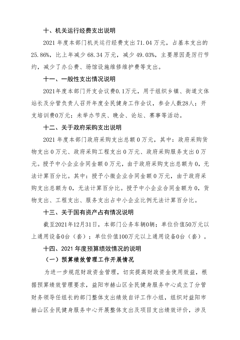2021年度 益阳市赫山区全民健身服务中心部门决算