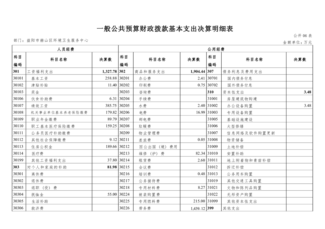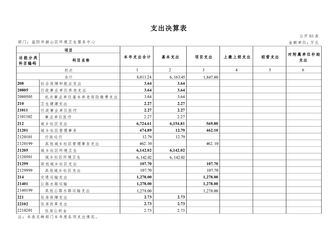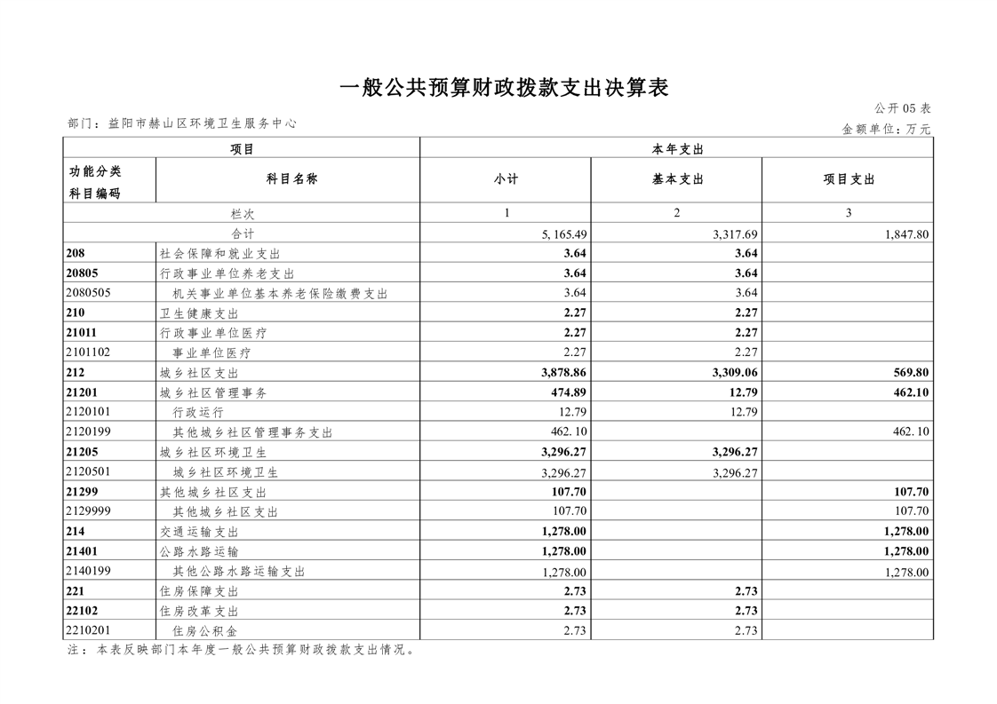 2021年度益阳市赫山区环境卫生服务中心部门决算