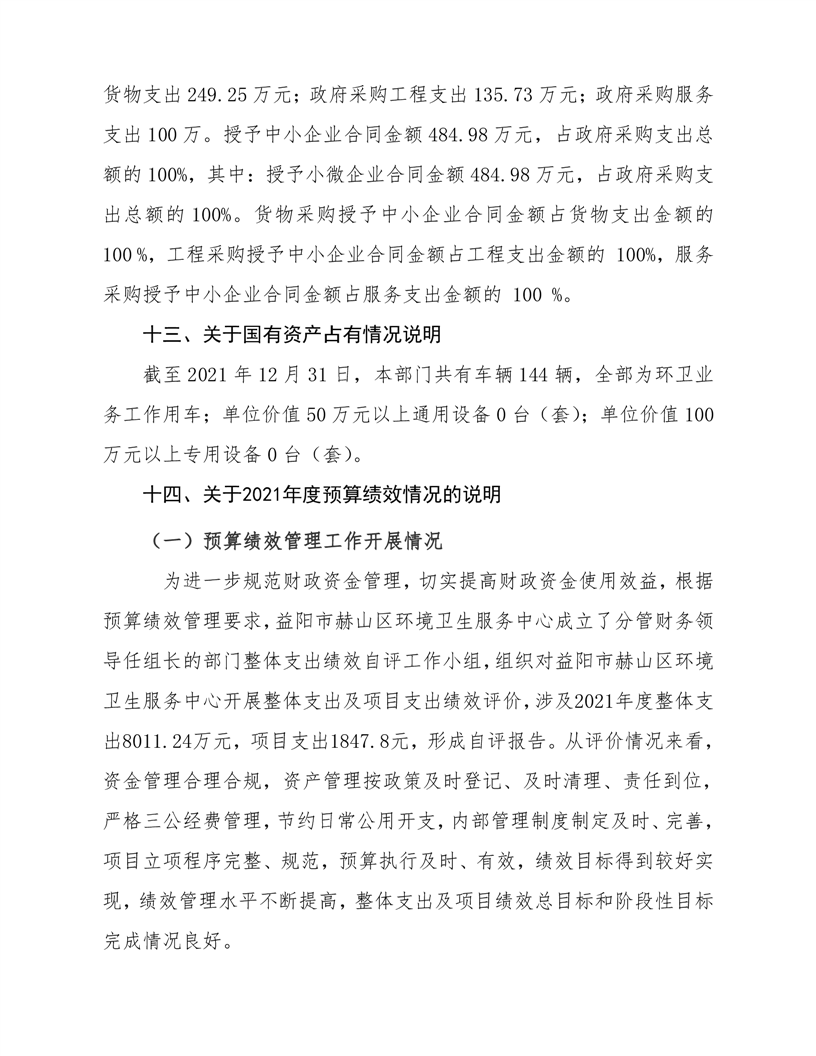 2021年益阳市赫山区环境卫生服务中心整体支出绩效评价报告.docx