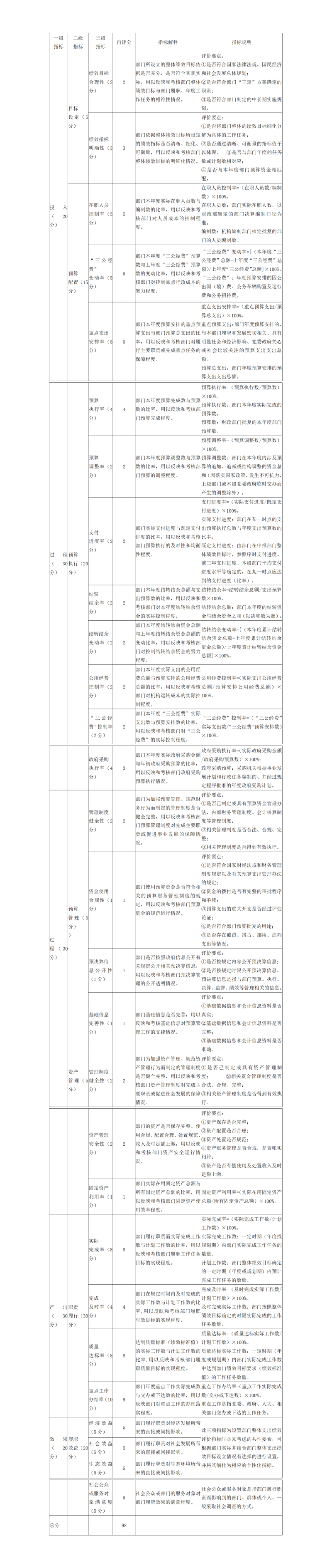 2020年度部门整体支出绩效自评指标计分表