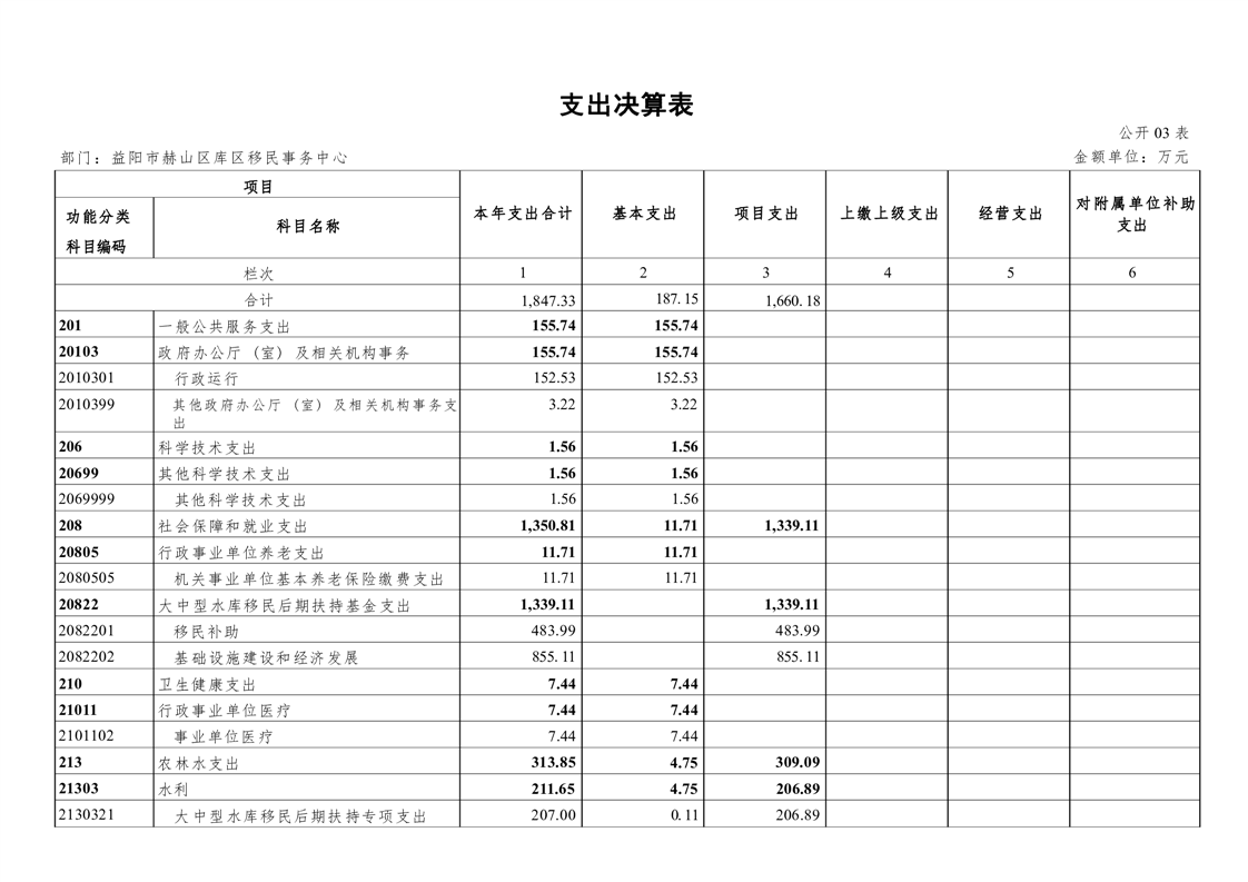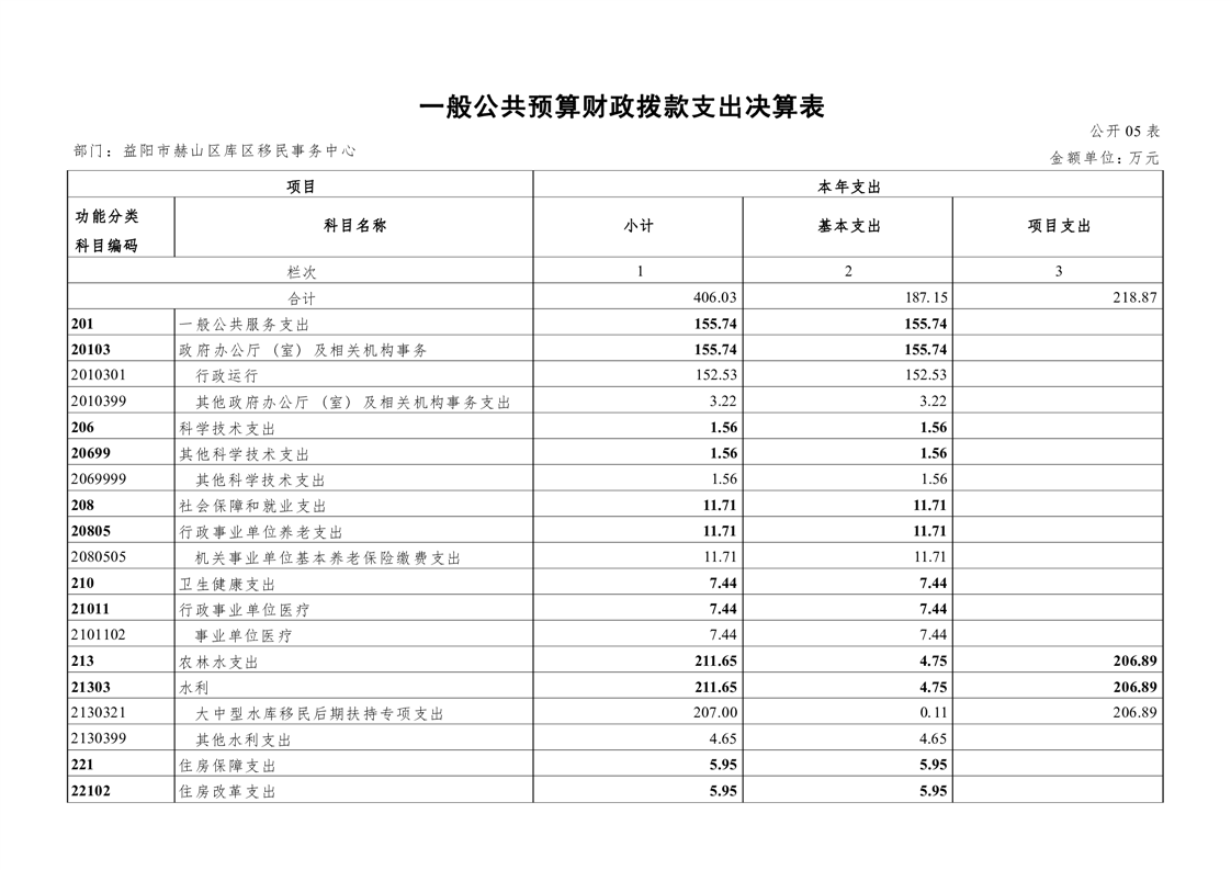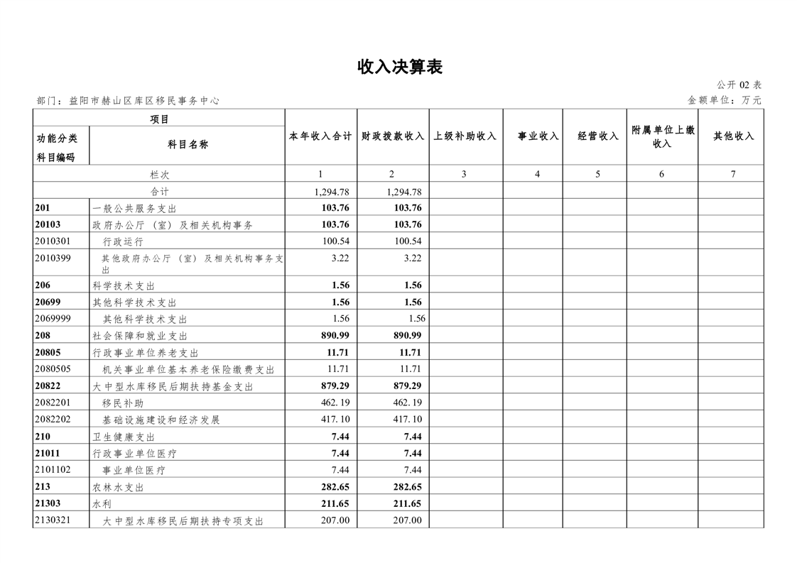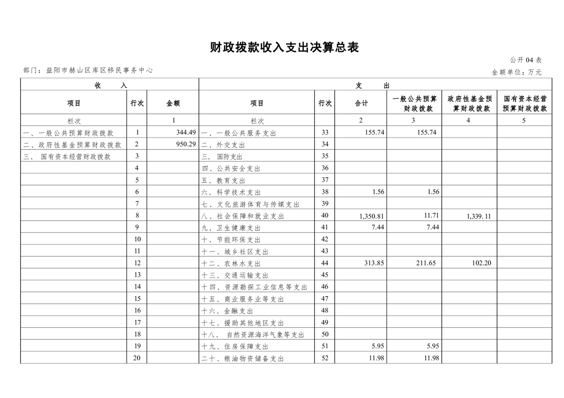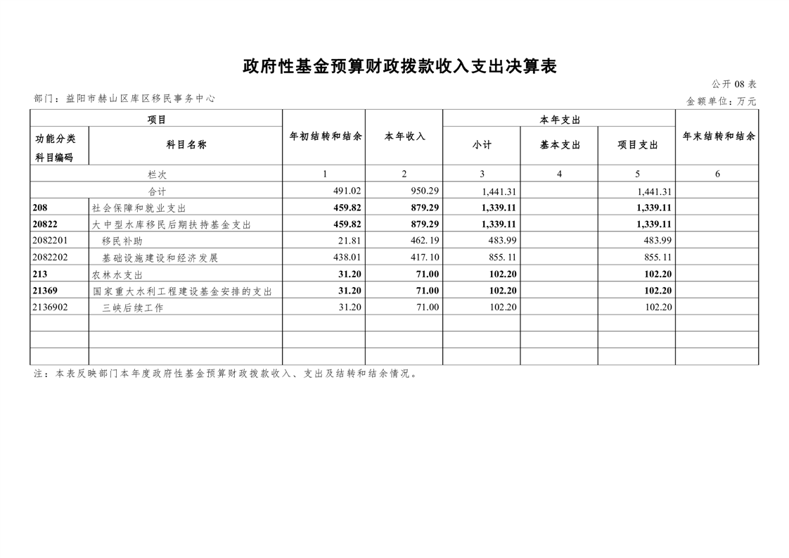 益阳市赫山区库区移民事务中心2021年度部门决算公开