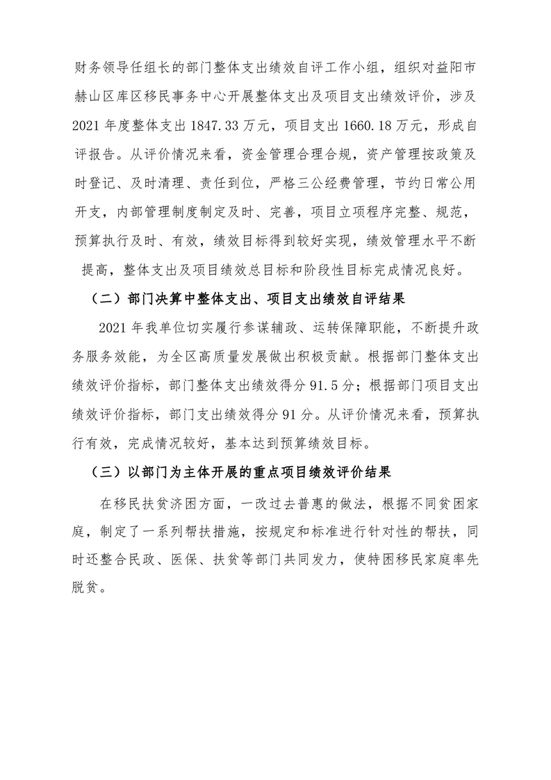 益阳市赫山区库区移民事务中心2021年度部门整体支出绩效评价报告.docx
