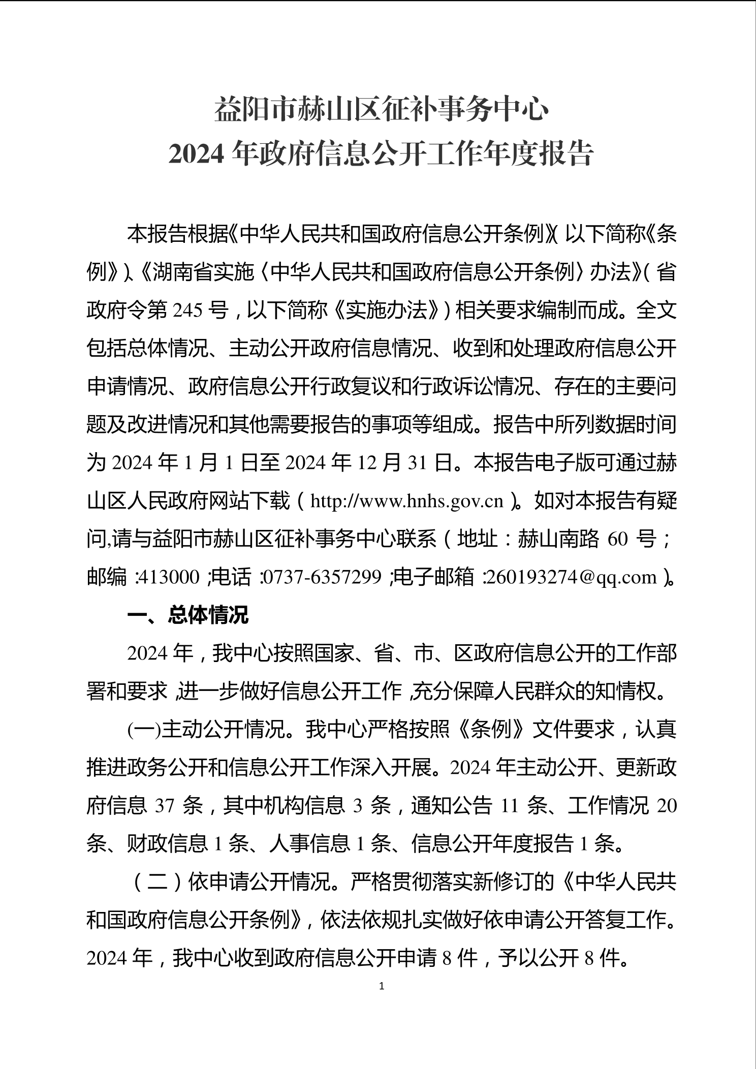 益阳市赫山区征补事务中心2024年政府信息公开年报