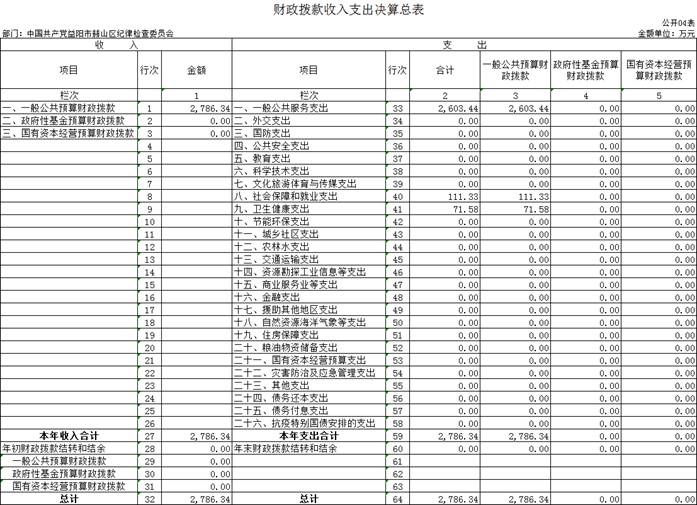 2022年度收、支总计2786.34万元。与上年相比,增加4.26万元,增长0.15%,主要原因是增加了纪检战线运行经费。