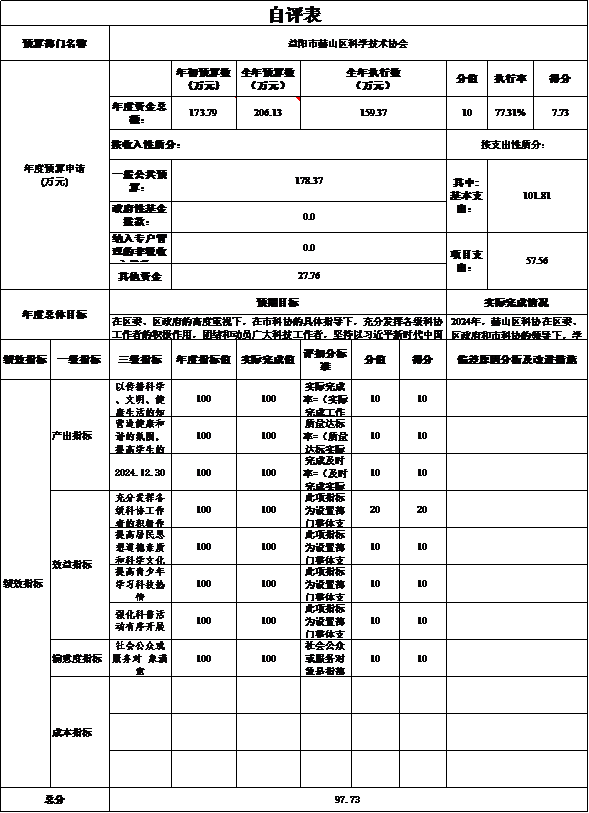 绩效目标完成情况:2024年,赫山区科协在区委、区政府和市科协的领导下,学习贯彻习近平新时代中国特色社会主义思想,力求做到思想上求实,作风上务实,工作上扎实,为全区经济工作发挥了应有的作用。