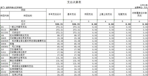 5、商业服务业等支出(类)商业流通事务(款)其他商业流通事务支出(项)年初预算为0万元,支出决算为10万元,决算数大于年初预算数的主要原因是:年初预算将“商业服务业等支出(类)商业流通事务(款)其他商业流通事务支出(项)”并入了“一般公共服务支出(类)商贸事务(款)行政运行(项)”,决算时进行了分拆。