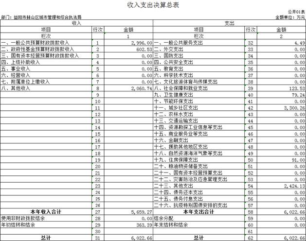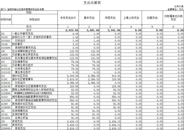 2022年度收、支总计6022.66万元。与上年相比,减少2624.04万元,减少30.35%,主要是因为减少了创建国家文明城市基础设施提质改造方面和“三微工程”项目的投入。