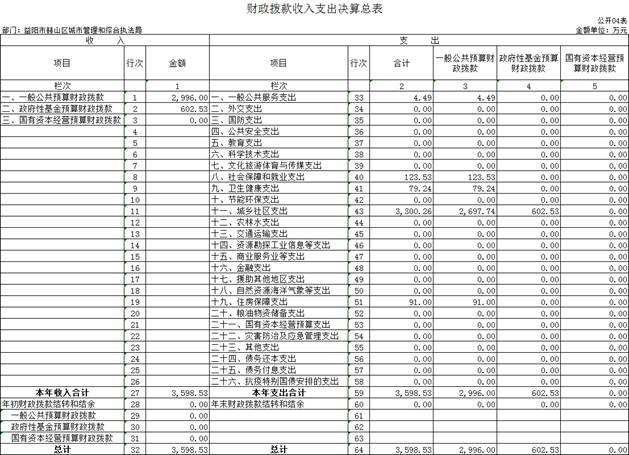 (2)决算单位构成。赫山区城市管理和综合执法局2022年部门决算汇总公开单位构成包括:赫山区城市管理和综合执法局本级