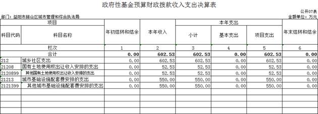 2022年度政府性基金预算财政拨款收入602.53万元;年初结转和结余0万元;支出602.53万元,其中基本支出602.53万元,项目支出0万元;年末结转和结余0万元。具体情况如下: