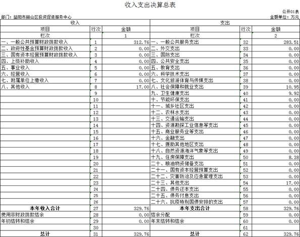 2022年度收、支总计329.76万元。与上年相比,减少58.31万元,减少15.03%,主要是因为疫情影响,招商引资工作经费支出减少。