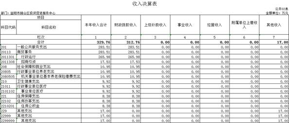 2022年度收入合计329.76万元,其中:财政拨款收入312.76万元,占94.84%;上级补助收入0万元,占0%;事业收入0万元,占0%;经营收入0万元,占0%;附属单位上缴收入0万元,占0%;其他收入17万元,占5.16%。