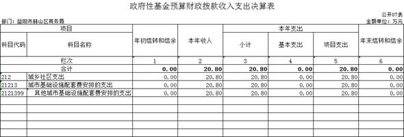 2022年度政府性基金预算财政拨款收入20.8万元;年初结转和结余0万元;支出20.8万元,其中基本支出0万元,项目支出20.8万元;年末结转和结余0万元。具体情况如下: