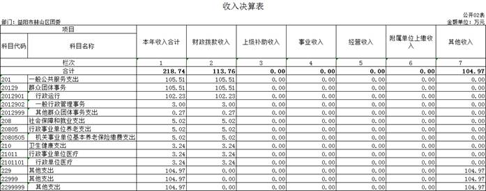 2022 年度收入总计 218.74万元,与上年相比,增加61.76万元,增加39.34%。支出总计218.74万元,与上年相比,增加61.76万元,增加39.34%。收入和支出增加主要是礼仪接待解说、县域共青团改革、青年中长期规划、志愿服务活动等相关工作任务量增加