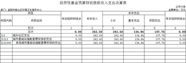 2022年度政府性基金预算收入总计242.6万元,占本年收入合计3.13%;本年政府性基金预算支出总计242.6万元,占本年支出3.13%。