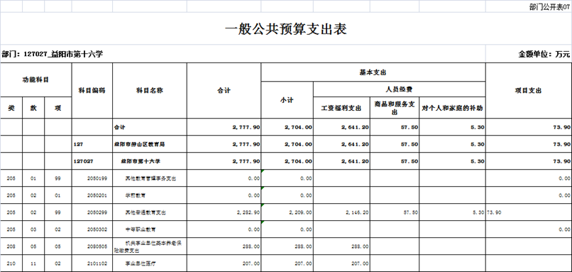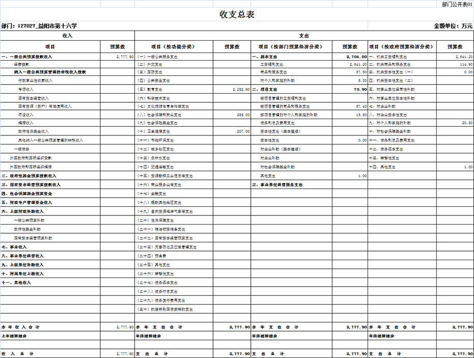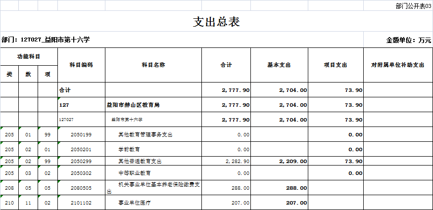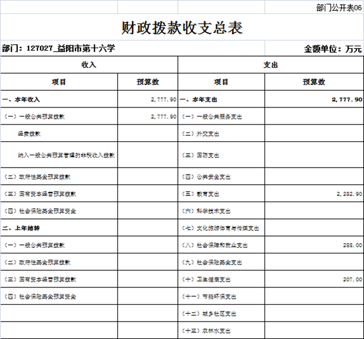 益阳市第十六中学部门决算