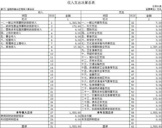 2022年度收、支总计1553.8。与上年相比,减少420.36万元,减少21.29%,主要是因为本年度财政拨入的残疾人就业保障金减少。