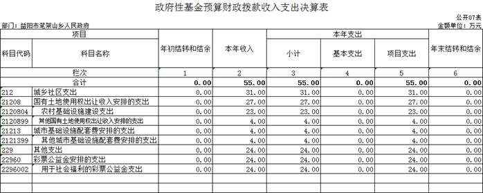 2022年度政府性基金预算财政拨款收入55万元,年初结转和结余0万元;2022年度政府性基金预算财政拨款支出55万元,其中基本支出0万元,项目支出55万元;年末结转和结余0万元。具体情况如下:
