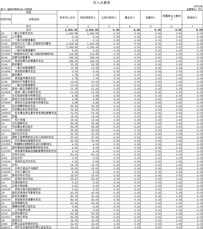 2022年度收入总计2054万元,与上年相比,减少3613.44万元,减少63.76%;支出总计2054万元,减少3613.44万元,减少63.76%。收入和支出减少主要是因为平益高速建设资金的投资减少了。