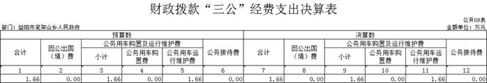公务用车运行维护费支出预算为1.66万元,支出决算为1.66万元,完成预算的100%,与上年相比无增减变动,主要原因是合理安排了公务车调度。