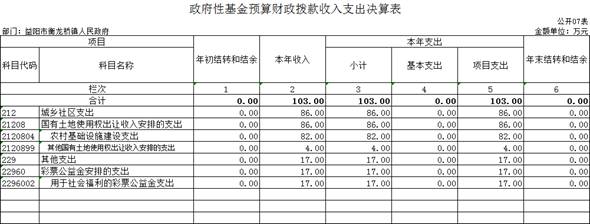 2022年度政府性基金预算财政拨款收入103万元;年初结转和结余0万元;支出103万元,其中基本支出0万元,项目支出103万元;年末结转和结余0万元。具体情况如下: