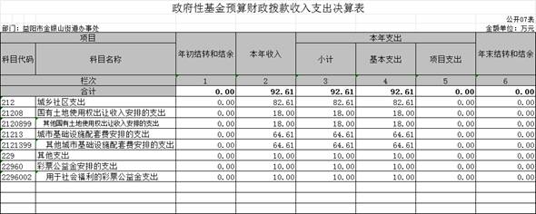 2022年度政府性基金预算财政拨款收入92.61万元;年初结转和结余0万元;支出92.61万元,其中基本支出92.61万元,项目支出0万元;年末结转和结余0万元。具体情况如下: