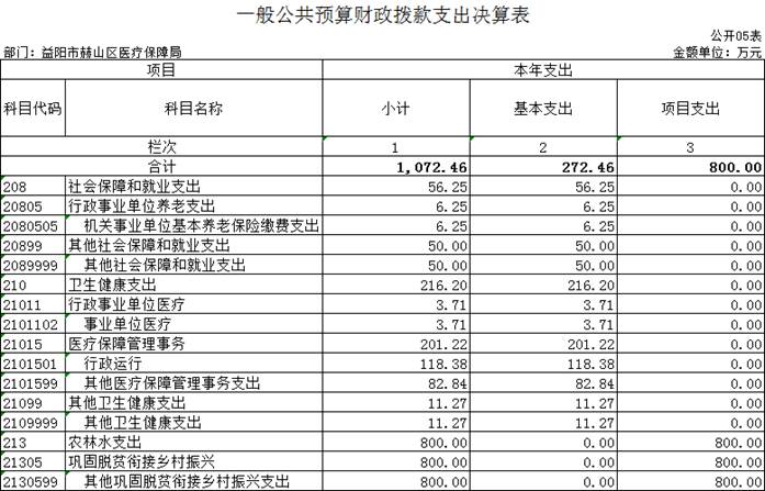(二)决算单位构成。益阳市赫山区医疗保障局只有本级,没有其他二级预算单位。因此,纳入 2022 年部门决算编制范围包括:益阳市赫山区医疗保障局本级。