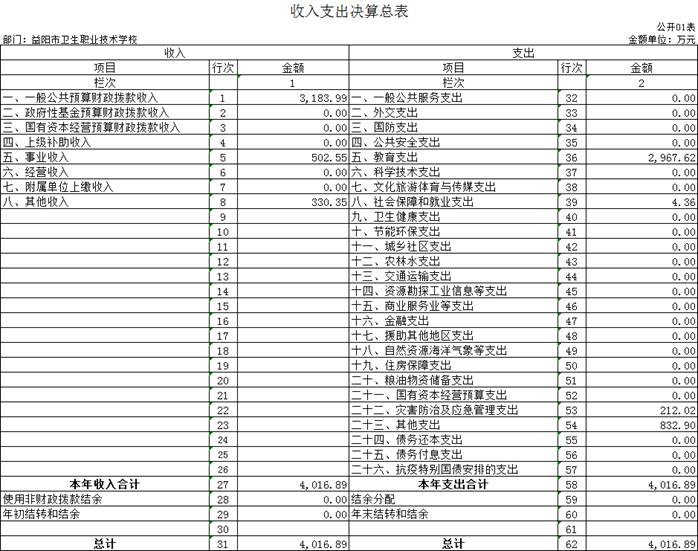 2022年度收、支总计4016.89万元。与上年相比,减少395.49万元,减少8.96%,主要是因为上级补助收入、事业收入减少。