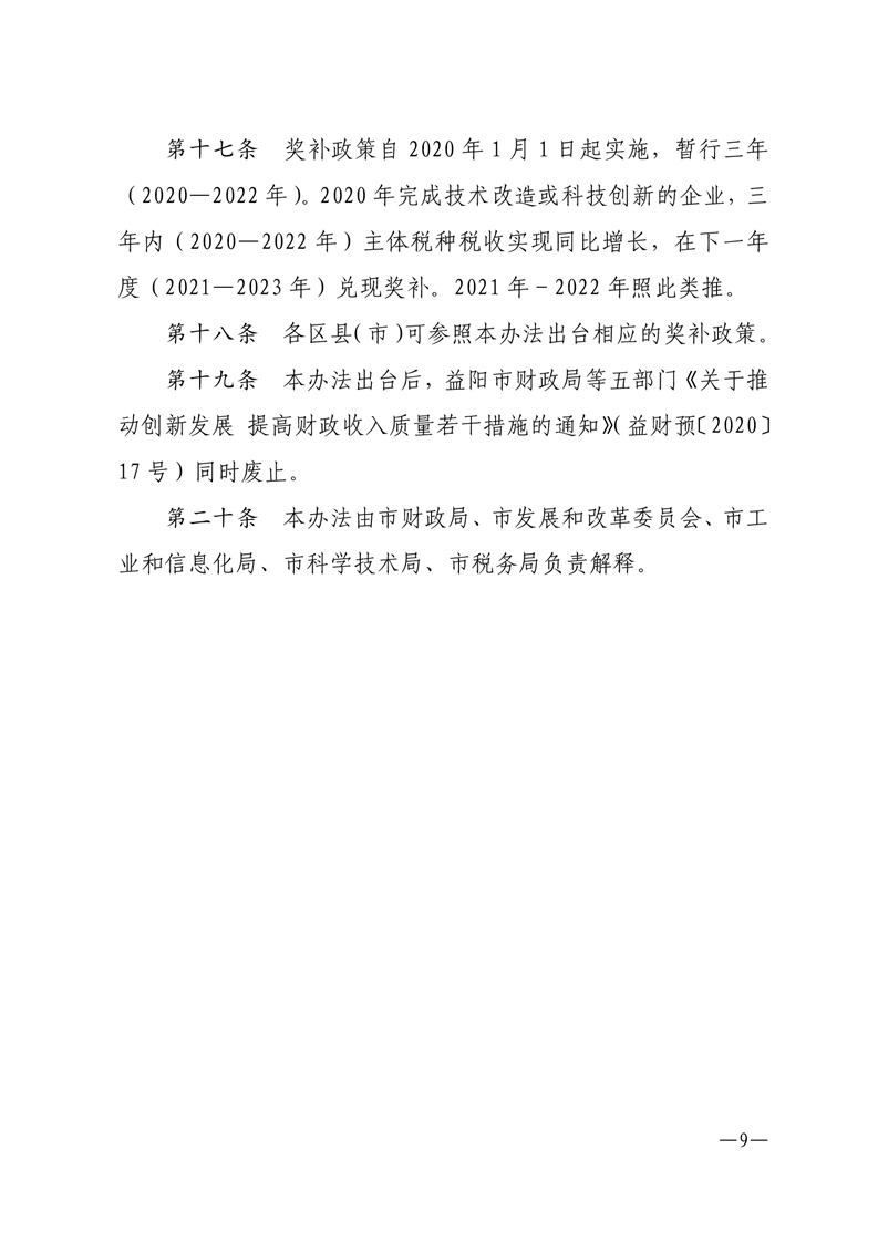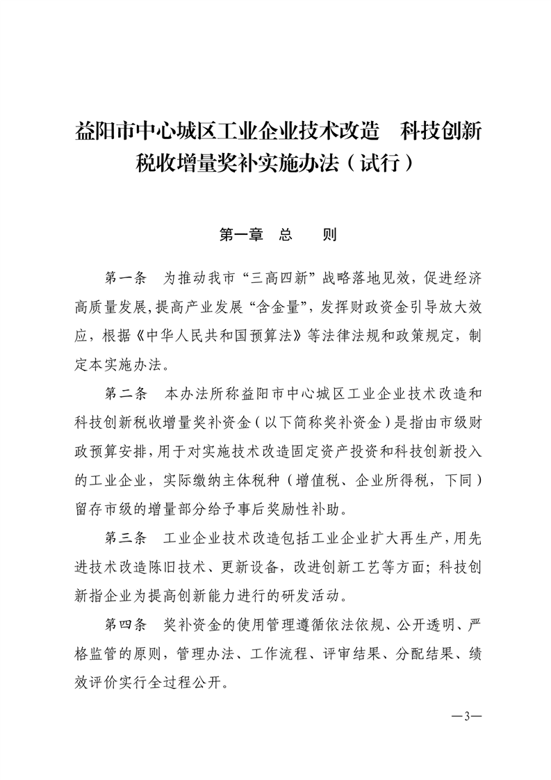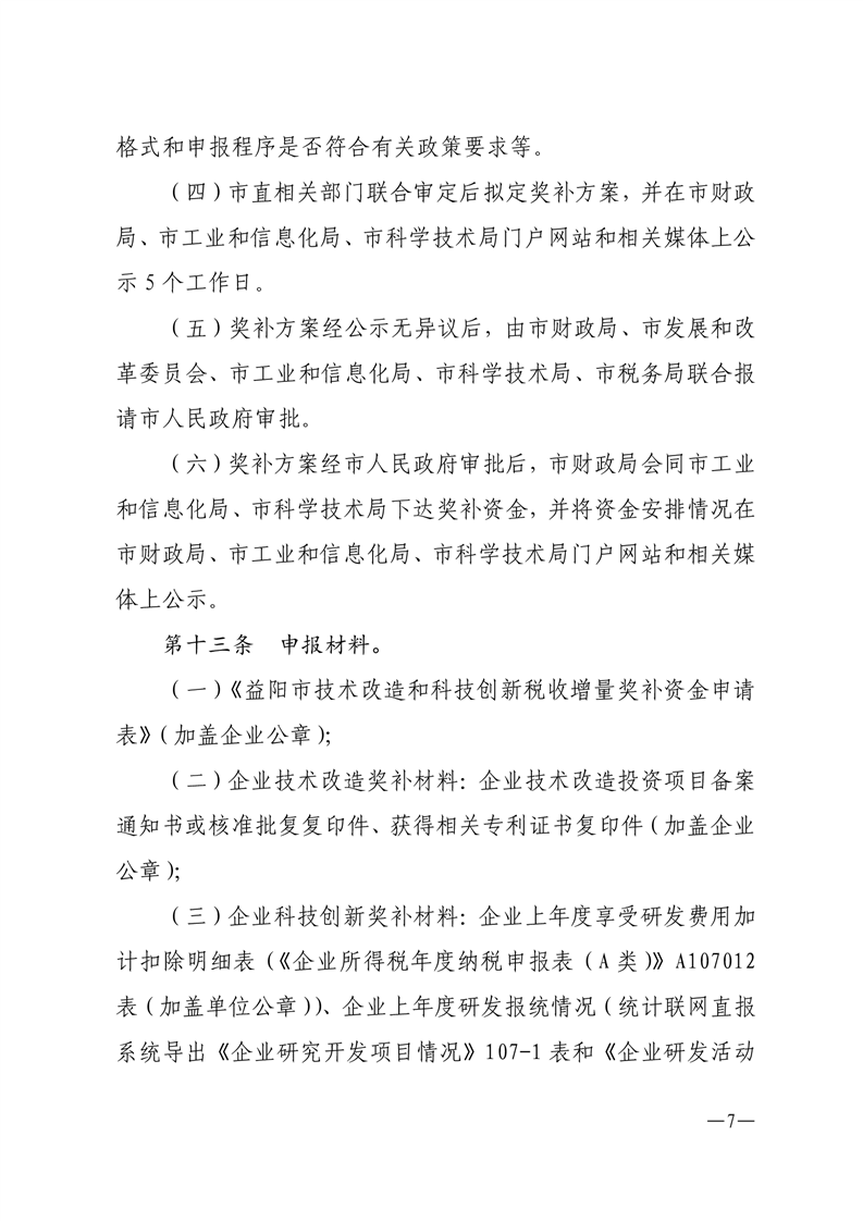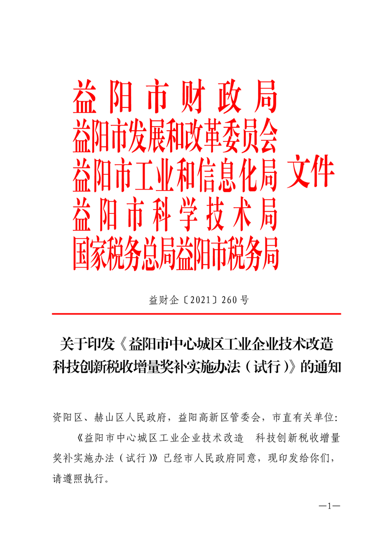 益阳市中心城区工业企业技术改造科技创新税收增量奖补实施办法(试行)