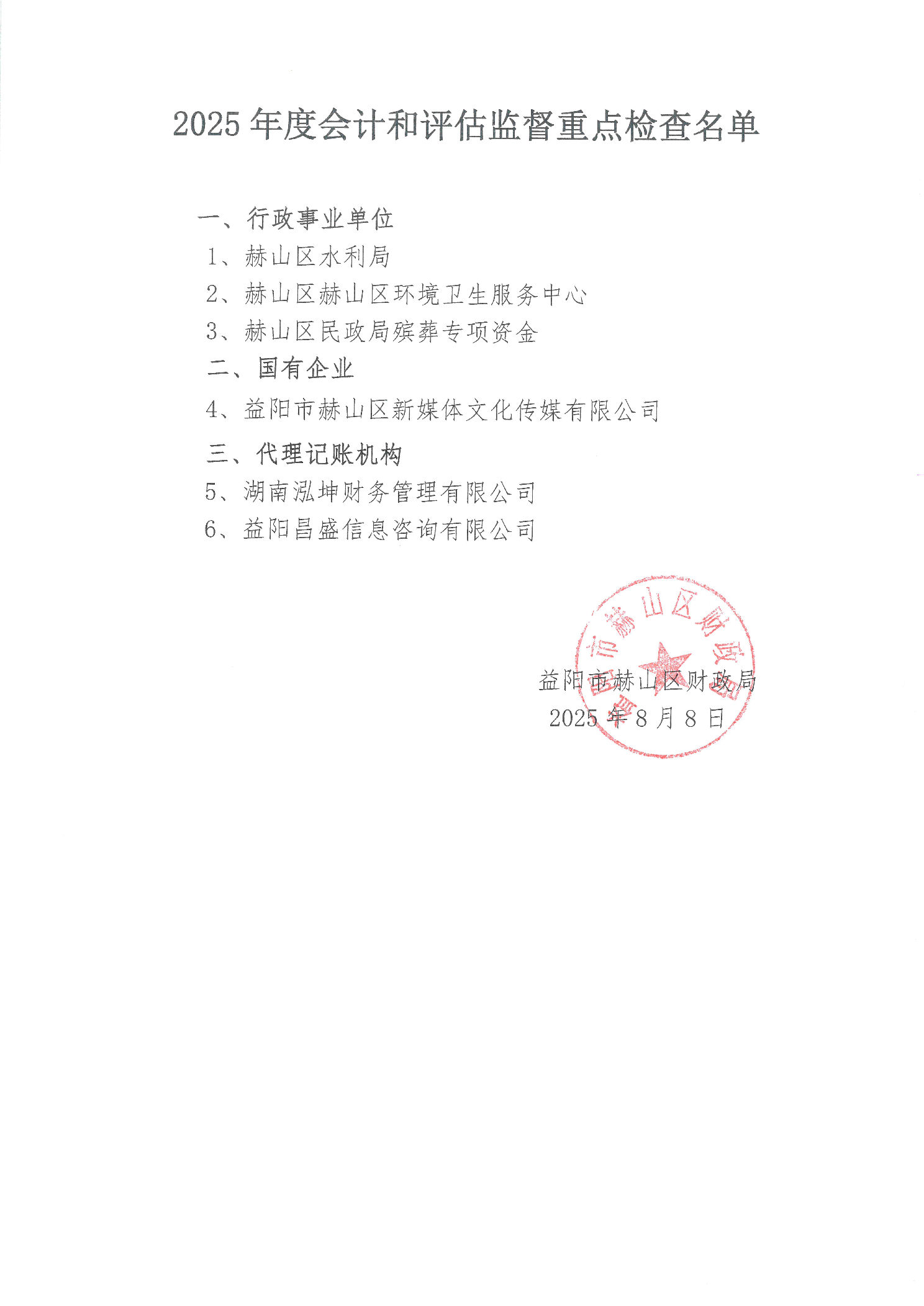 2025年度会计和评估监督重点检查名单