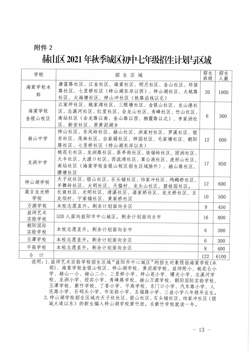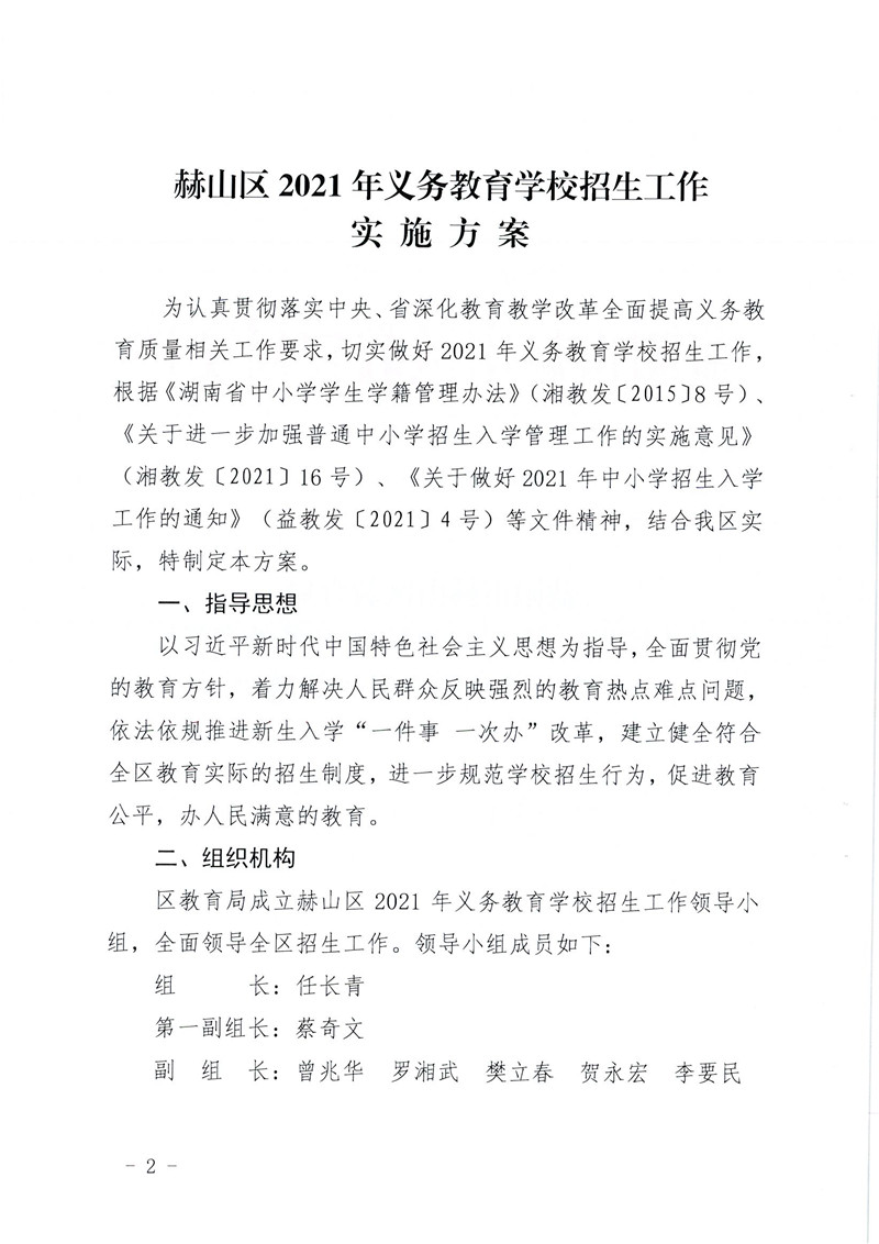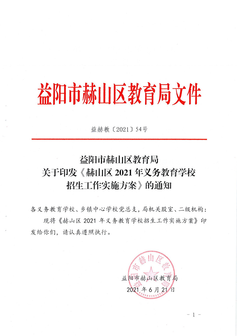 关于印发《赫山区2021年义务教育阶段学校招生工作实施方案》的通知