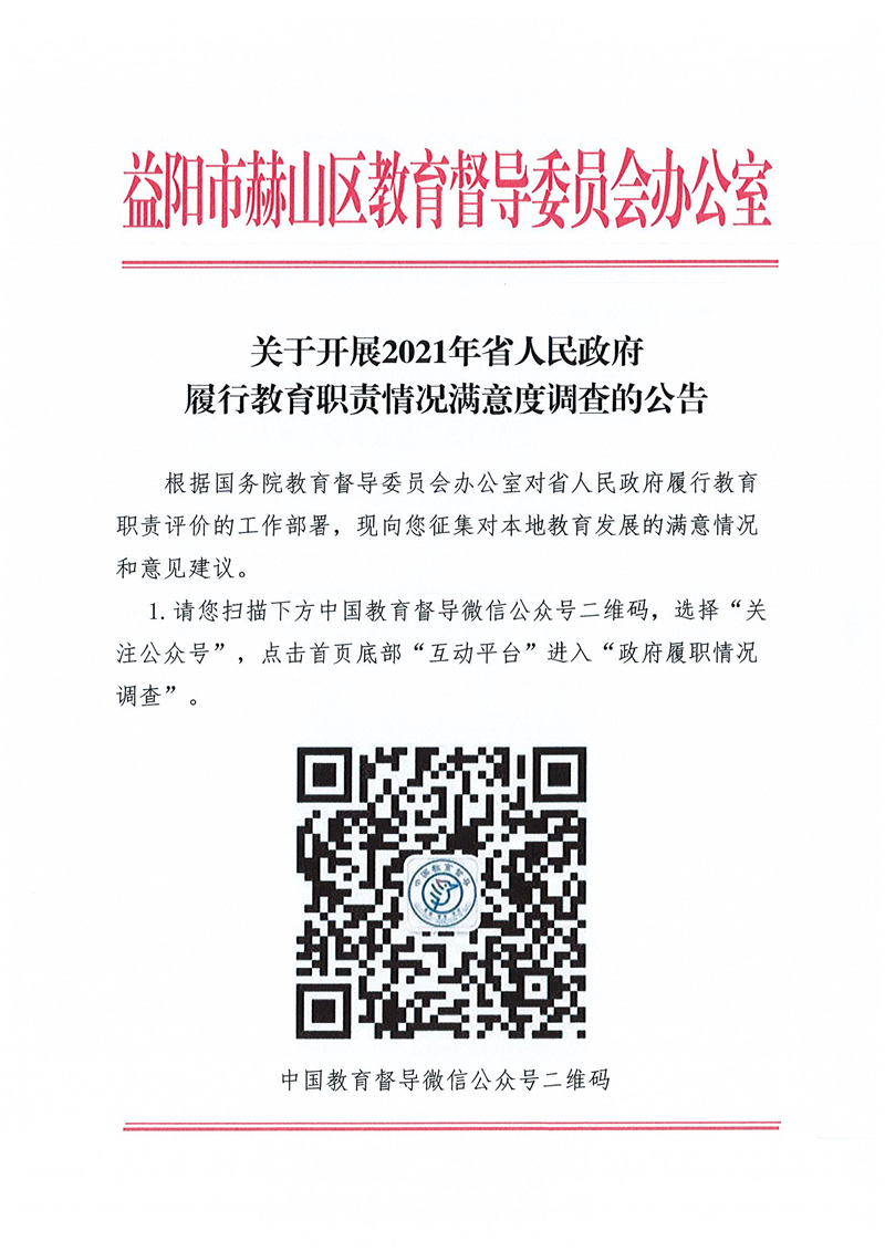 关于开展2021年省人民政府履行教育职责情况满意度调查的公告