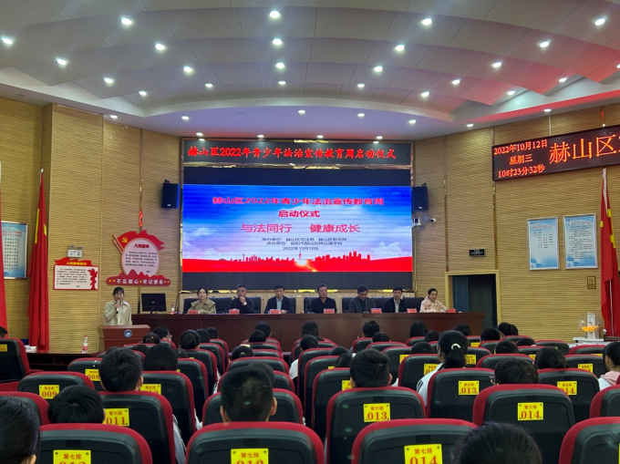 10月12日上午,由赫山区教育局、区司法局共同主办的2022年赫山区青少年法治宣传教育周活动在梓山湖学校启动。本次宣教活动以“与法同行·健康成长”为主题,强化广大青少年尊法学法守法用法的意识。