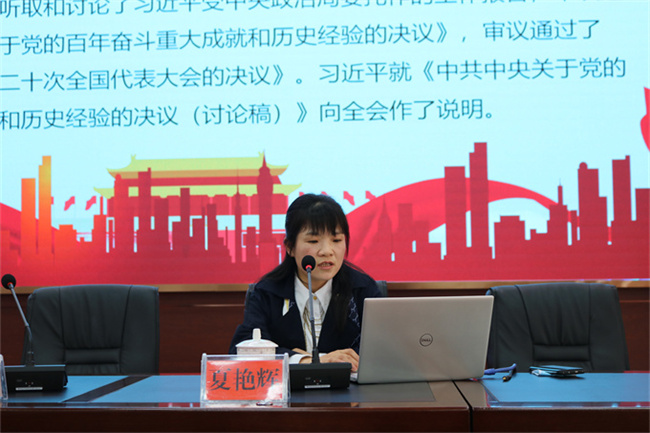 报告会上,夏艳辉同志运用丰富的史实、生动的案例、翔实的数据,回顾了党百年奋斗光辉历程和取得的重大成就,对全会的重大意义、重要内容、贯彻落实等多个方面进行了全方位梳理和解读,深刻阐释了《决议》对更加紧密团结在以习近平同志为核心的党中央周围,把全党意志更加凝聚在中华民族伟大复兴的旗帜下,开启全面建设社会主义现代化国家的新征程,具有十分重大而深远的意义。报告主题鲜明、重点突出、内容丰富,既有理论上的深刻感悟,又有实践中的升华提炼,具有很强的思想性、理论性和指导性。参会人员认真聆听,详细记录,纷纷表示要自觉用全会精神统一思想、凝聚力量,切实肩负起党给予的时代重任,为党和人民各项事业源源不断输送新时代合格的接力者、奋斗者,努力以优异成绩迎接党的二十大胜利召开。会议还部署安排了安全维稳、疫情防控、预算审计等工作。