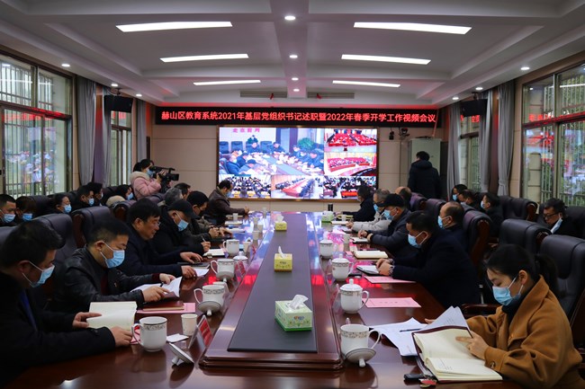 2月11日上午,赫山区教育系统2021年基层党组织书记述职暨2022年春季开学工作会议召开。区教育局党组书记、局长任长青主持会议。