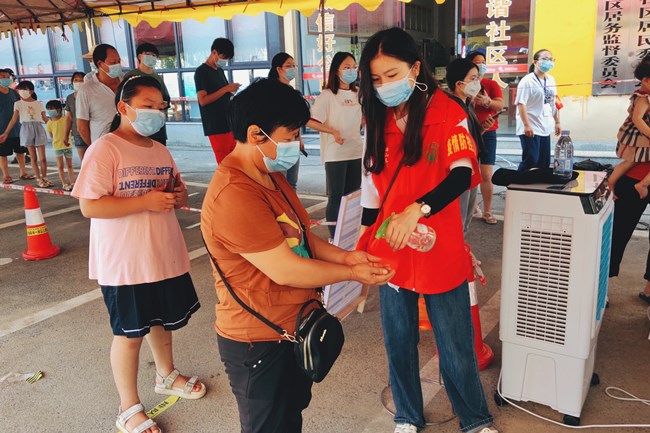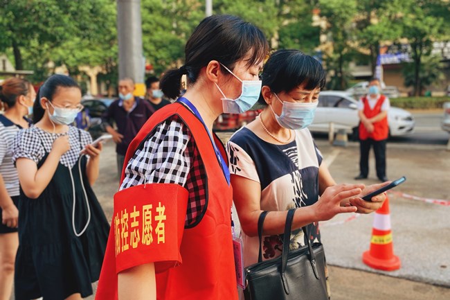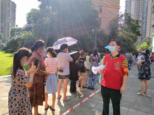 8月4日至6日,全区共有13所学校派出140名教师志愿者前往城区35个服务站点,投入紧张的核酸检测志愿服务工作。面对感染风险,赫山教师志愿者勇敢冲在最前线,与医护人员、社区工作者并肩,同病毒赛跑。引导组志愿者及时与医护人员、受测人员沟通,耐心、热情地为居民们答疑解惑;秩序组志愿者来回调控,并为年长者、身体不适者及时提供相应帮助;信息采集组志愿者坚守在一张张小课桌前,认真采集、上报、核对核酸检测信息,防止出现信息比对错误。前几日,天气阴晴不定,教师志愿者们在酷暑和暴雨中交替作战,严格按照工作流程为居民服务。“人民教师为人民,我们都希望为守护这座城市、守护益阳人民尽自己的一份力。”这是全体赫山教师志愿服务者的心声。