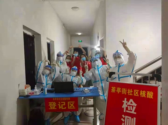 在这场没有硝烟的战斗中,朝阳市场中心街检测点曾有“红码”出现,“派谁去”成了防疫志愿组指挥部的头号难题。龙岭学校党支部书记、校长曾立玉主动请缨,带领学校党员教师冲锋在前,积极与街道、社区负责人对接,勘察场地、安排线路、架设器械、布置核酸检测通道、增加照明设备,反复模拟检测过程,不断调整优化,为阻断疫情传播尽最大的努力。区教研培训中心教研员杨春与民办培训机构教师们自发组成疫情防控后勤保障小分队,前往各志愿服务队驻点送水、分发防疫物资。“暑假其实也是老师们的休息时间,他们放弃休息,义不容辞加入志愿者队伍,再辛苦再累也毫无怨言,让人非常感动。”后勤保障人员表示他们也将随时待命,为疫情防控贡献微薄力量。