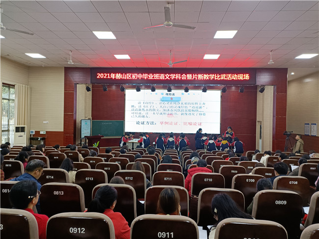 4月12日,赫山区2021年初中毕业班语文学科会在万源学校召开,来自全区32所初中学校的132名九年级语文教师参加活动,共同商议如何备战2021年语文中考。
