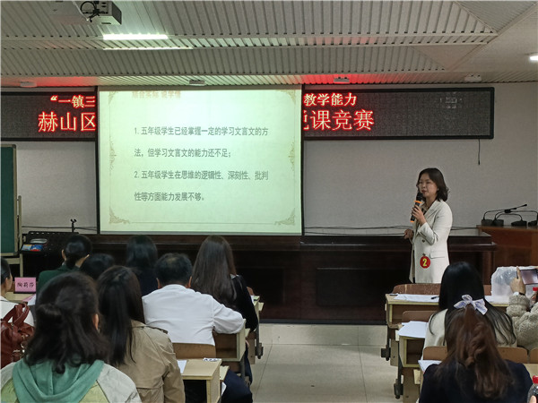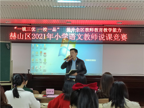 “各位老师,我将从以下6个方面来讲述本堂课的设计意图……”4月6日上午,赫山区2021年小学语文说课比赛决赛在区教研培训中心举行,来自全区的12名小学语文教师同台竞技。