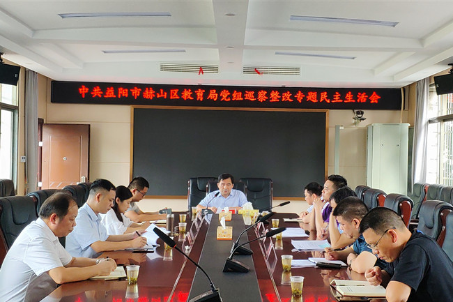 7月29日,赫山区教育局党组政治巡察整改专题民主生活会召开,局党组书记、局长任长青主持会议。区委巡察办副主任姚日华、区委组织部党管科科长陈锴到会指导。