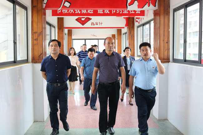5月26日下午,区政协主席杨伯森带队视察学校体育艺术和校园足球工作,了解学校落实促进学生全面发展工作情况。区人民政府副区长提名人选刘彩霞、区教育局局长任长青陪同视察。