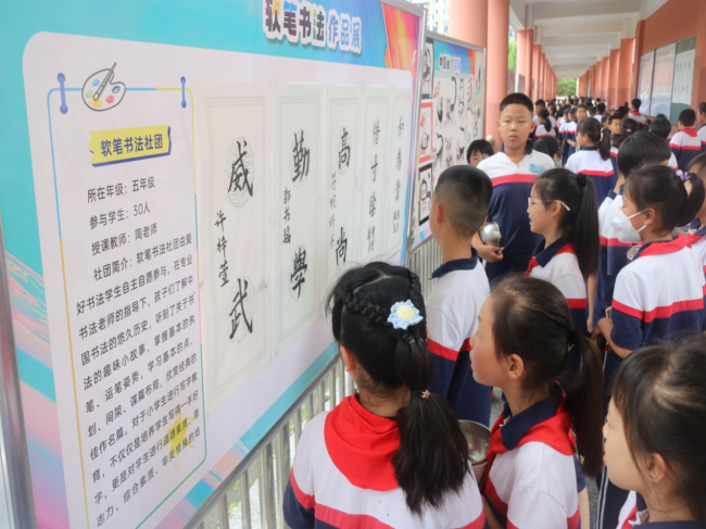在社团成果展示活动上,中国画、软笔书法、创意绘画等社团,以社团学员作品为主进行书画创作巡展;电子琴、扬琴等社团,制作器乐表演视频进行展示;flash动画制作、劳动技能操作等科技劳动教育类社团将实践中的精彩过程进行展示;田径、篮球、足球和羽毛球等体育技能类社团散发着难以抗拒的吸引力,汇聚了众多热血少年。“学校积极构筑‘第二课堂’,充分发挥实践活动育人功能,助力学生快乐学习、健康成长。”湖南城市学院附属梓山湖学校相关负责人表示。