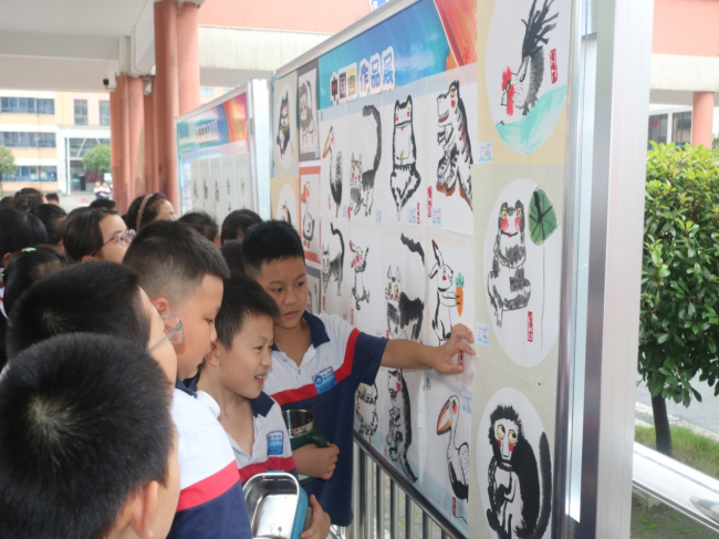 “哇!画得真好!”“我也参加了,看!有我的作品在这里!”6月25日,湖南城市学院附属梓山湖学校举办全校期末社团成果展示,课间驻足欣赏的学生们不时发出此起彼伏的惊叹声。