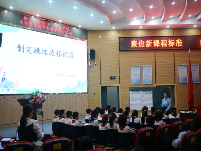 该校教师何腊鸣执教《识字5 动物儿歌》,通过游戏与情景教学,由易到难教授汉字的书写与结构认识,有效达成教学目标;唐文婕执教《制定班级跳远达标标准》,落实跨学科整合教学,把体育测试内容融入数学统计教学,引导学生自主运用统计技能自主进行数学学习拓展。课后,市教科院小学数学教研员张丽萍、区教培中心小学语文教研员陶丽莎相继针对教学设计进行了点评和指导,并解读了新课标课堂教学核心素养内涵。