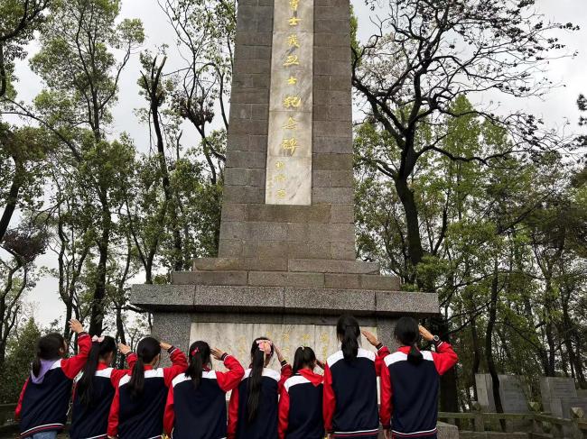 全体师生在烈士碑前肃立默哀,敬献鲜花,表达对烈士的崇高敬意和深切悼念之情。该校党支部书记何文芳在讲话中勉励全体师生传承革命先烈优秀品质,为共产主义事业奋斗终身。